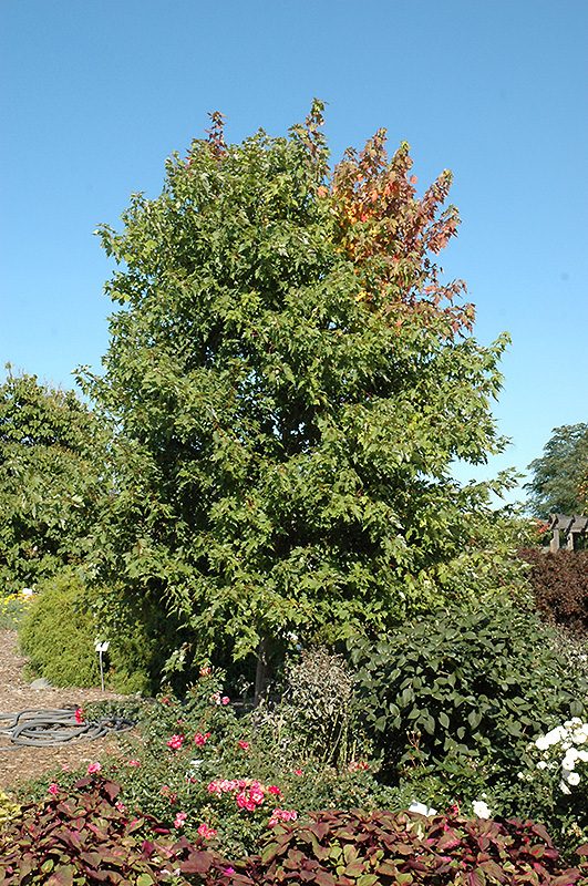 One of the very hardiest red fall-coloring shade trees available, this hybrid maple features a uniform branching habit and attractive pyramidal-oval shape; tolerant of alkaline, acidic and wet soil conditions, stronger wood than other hybrids
