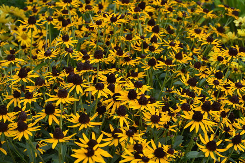 Little Goldstar Coneflower has masses of beautiful gold daisy flowers with dark brown eyes at the ends of the stems from mid summer to early fall, which are most effective when planted in groupings. The flowers are excellent for cutting. Its pointy leaves remain dark green in color throughout the season.