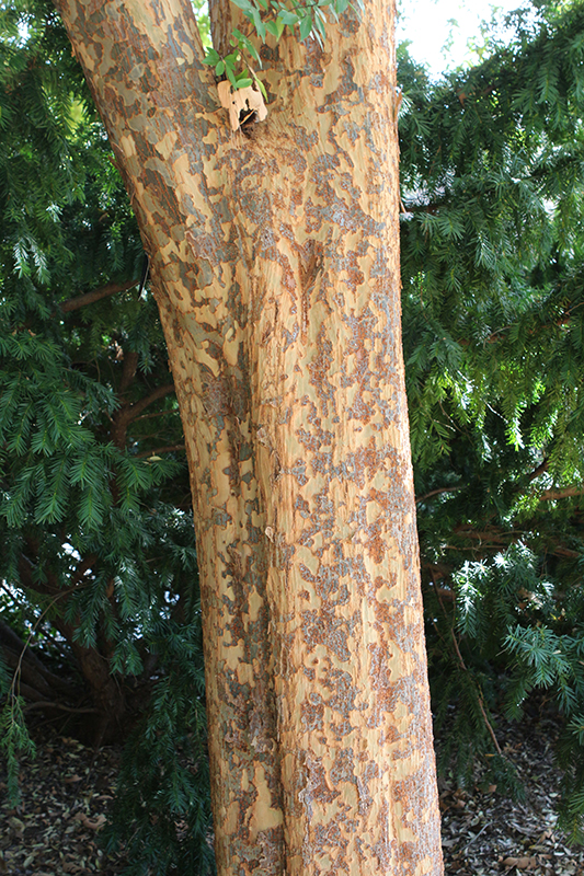 Allee Elm has dark green deciduous foliage on a tree with an upright spreading habit of growth. The small serrated pointy leaves turn yellow in fall. The mottled brown bark is extremely showy and adds significant winter interest.