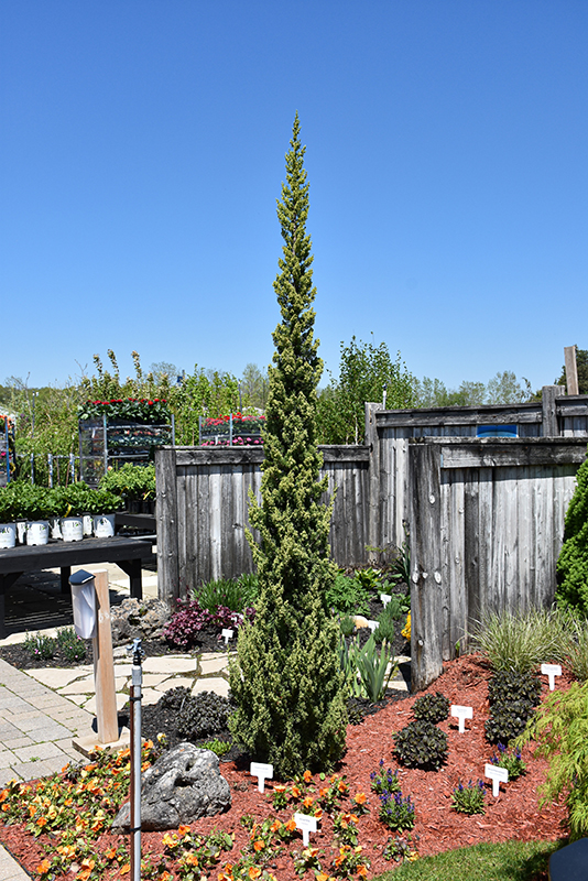 Trautman Juniper will grow to be about 19 feet tall at maturity, with a spread of 4 feet. It tends to fill out right to the ground and therefore doesn't necessarily require facer plants in front, and is suitable for planting under power lines. It grows at a slow rate, and under ideal conditions can be expected to live for approximately 30 years.
