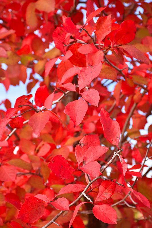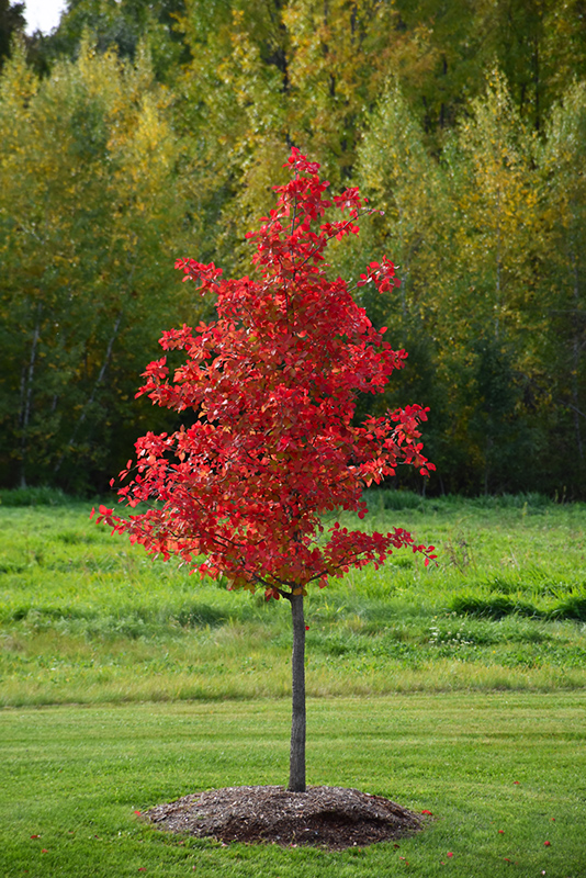 A glorious native variety producing bold red new foliage that matures to dark green, then a fiery scarlet in fall; a neat, pyramidal habit of growth when young; needs moist, organic, acidic soils, intolerant of urban pollution