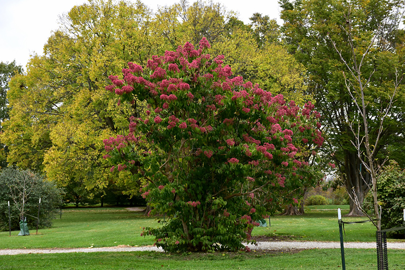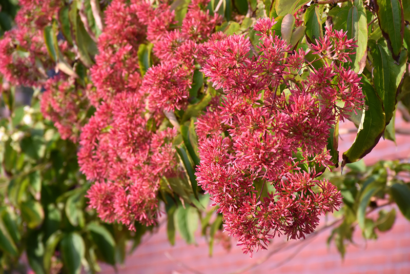 Seven-Son Flower is primarily grown for its highly ornamental fruit. It features abundant showy pink capsules from mid to late fall. It has panicles of fragrant creamy white flowers at the ends of the branches from late summer to mid fall, which are interesting on close inspection. It has forest green deciduous foliage which emerges lime green in spring. The pointy leaves do not develop any appreciable fall color. The shaggy antique red bark is extremely showy and adds significant winter interest.