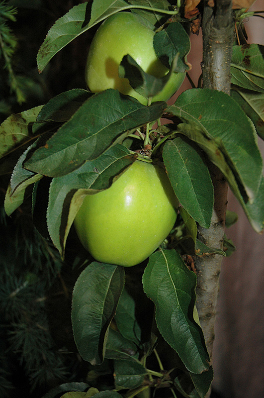 A crisp, hardy yellow-green apple with a tangy flavor; growth habit is very compact and columnar; eating apples are high maintenance and need a second pollinator; the perfect combination of accent and fruit tree, needs well-drained soil and full sun