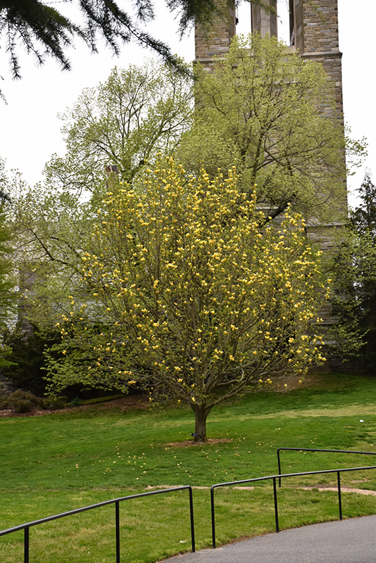 A stunning magnolia that produces luminous yellow blooms with plum flushed bases; a small tree with an upright columnar form and large, relatively coarse leaves; flowers just as foliage appears; an ideal landscape or garden accent
