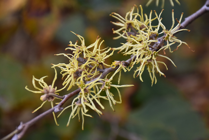 A large shrub with an upright, wide-spreading habit of growth; fall is its season to shine, with fragrant bright yellow strap-shaped flowers and golden fall foliage (which often hides the flowers); grow where space is not a problem
