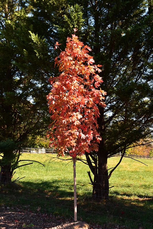 A majestic shade tree noted for its reliable burnt orange to red early fall color, much more consistent performance than the species; adaptable to soils, but dislikes air pollution and compaction; vigorous, with a good central leader and upright shape
