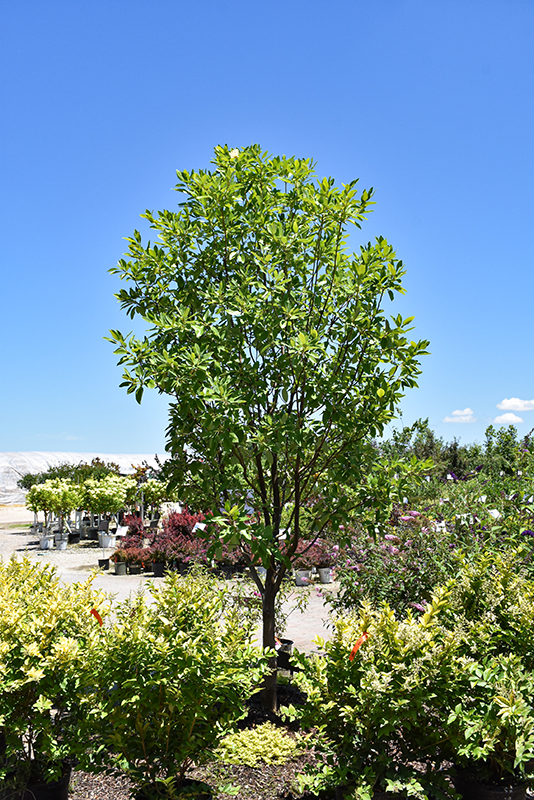 A medium sized tree with fragrant cup-shaped flowers in late spring, and then sporadically throughout summer; withstands lower winter temperatures, semi-evergreen; narrow habit makes it a wonderful accent in smaller home landscapes