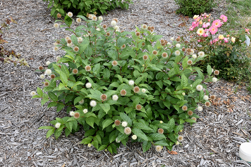 Fiber Optics® Button Bush will grow to be about 5 feet tall at maturity, with a spread of 5 feet. It tends to fill out right to the ground and therefore doesn't necessarily require facer plants in front, and is suitable for planting under power lines. It grows at a fast rate, and under ideal conditions can be expected to live for approximately 20 years.