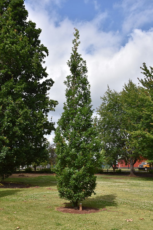 An extremely beautiful tall tree with a narrowly columnar habit of growth and rusty-red fall color, ideal for formal screening, or as a vertical accent in the home landscape; extremely tough and adaptable, faster growing than other oaks