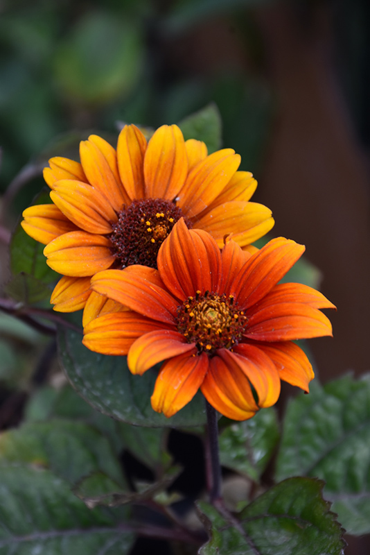 Bleeding Hearts False Sunflower has masses of beautiful red daisy flowers with orange overtones, brick red eyes and yellow tips at the ends of the stems from early summer to mid fall, which are most effective when planted in groupings. The flowers are excellent for cutting. Its serrated oval leaves emerge green in spring, turning dark green in color with showy deep purple variegation throughout the season. The deep purple stems can be quite attractive.