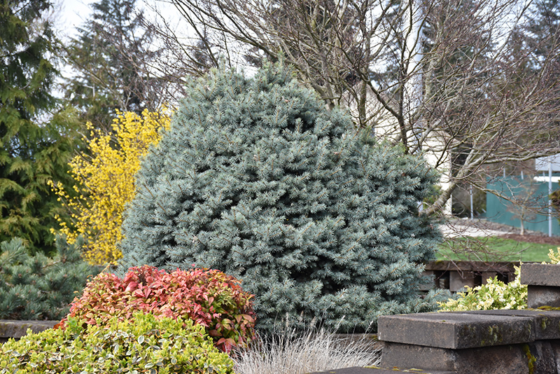 This selection has bright blue color and a slow growth rate, perfect for gardens with limited space; this small form of the Colorado Blue Spruce requires little maintenance to maintain its tidy conical form