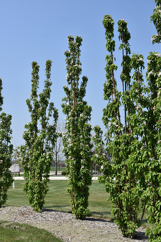 A beautiful and hardy cultivar with a narrow columnar habit; covered with abundant white blooms in spring; tiny red fruit is small, persistent, and adds ornamental value for fall and winter; an excellent vertical landscape accent; disease resistant
