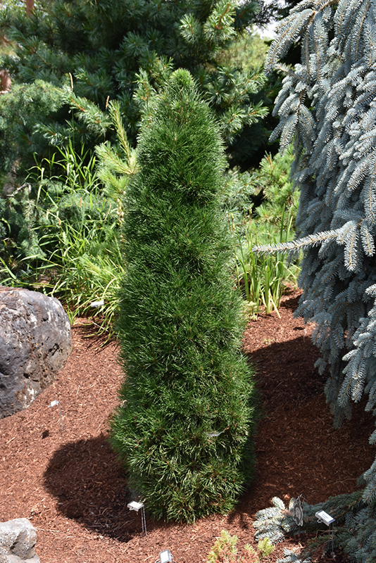 Green Penguin Scotch Pine is a dwarf conifer which is primarily valued in the landscape or garden for its rigidly columnar form. It has forest green evergreen foliage which emerges light green in spring. The needles remain forest green throughout the winter.