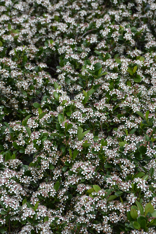 Ground Hug™ Aronia will grow to be about 12 inches tall at maturity, with a spread of 3 feet. When grown in masses or used as a bedding plant, individual plants should be spaced approximately 3 feet apart. It tends to fill out right to the ground and therefore doesn't necessarily require facer plants in front. It grows at a slow rate, and under ideal conditions can be expected to live for approximately 20 years.