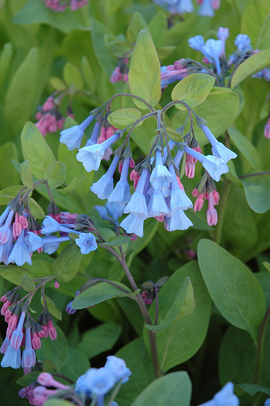 Virginia Bluebells will grow to be about 18 inches tall at maturity, with a spread of 18 inches. Its foliage tends to remain dense right to the ground, not requiring facer plants in front. It grows at a medium rate, and under ideal conditions can be expected to live for approximately 5 years. As an herbaceous perennial, this plant will usually die back to the crown each winter, and will regrow from the base each spring. Be careful not to disturb the crown in late winter when it may not be readily seen! As this plant tends to go dormant in summer, it is best interplanted with late-season bloomers to hide the dying foliage.