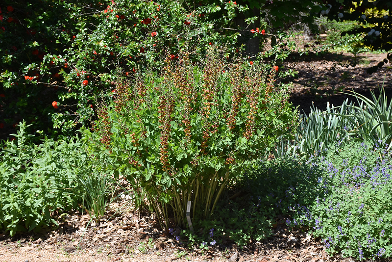 Honey Roasted False Indigo will grow to be about 3 feet tall at maturity, with a spread of 4 feet. It tends to be leggy, with a typical clearance of 1 foot from the ground, and should be underplanted with lower-growing perennials. It grows at a slow rate, and under ideal conditions can be expected to live for approximately 25 years. As an herbaceous perennial, this plant will usually die back to the crown each winter, and will regrow from the base each spring. Be careful not to disturb the crown in late winter when it may not be readily seen!