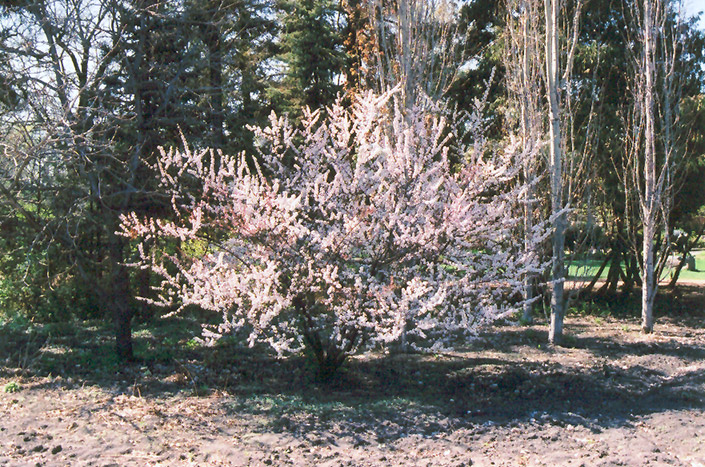 This versatile tall and wide-spreading shrub is covered in showy light pink flowers in early spring before the leaves, followed by irresistibly sweet bright red cherries, also interesting peeling reddish-brown bark; great as an accent or edible hedge