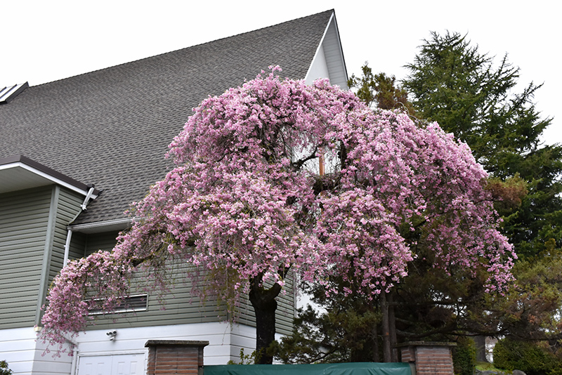 Double Pink Weeping Higan Cherry will grow to be about 25 feet tall at maturity, with a spread of 25 feet. It has a low canopy with a typical clearance of 1 foot from the ground, and is suitable for planting under power lines. It grows at a medium rate, and under ideal conditions can be expected to live for 60 years or more.