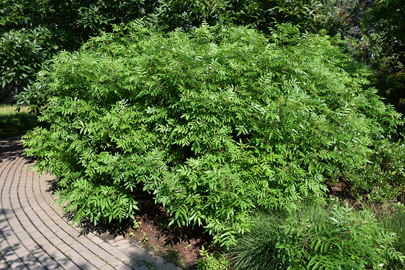 A selection of this exotic species that's significantly smaller in stature making it more suitable for average landscapes; flaming red fall color, white flower spikes in late summer, suckers vigorously to form thickets, excellent for naturalizing