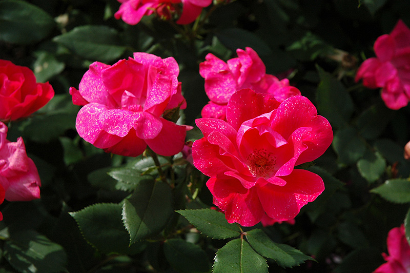 One of the most popular roses in the world today, primarily due to its low maintenance, superior disease resistance and incredibly long period of bloom, with seemingly endless cherry red flowers; all roses need full sun and well-drained soil