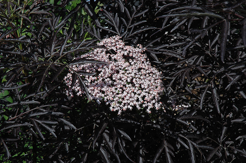 Black Lace® Elder features showy clusters of fragrant shell pink flowers held atop the branches in early summer, which emerge from distinctive rose flower buds. It has attractive deep purple deciduous foliage. The deeply cut compound leaves are highly ornamental but do not develop any appreciable fall color. The deep purple fruits are held in clusters in early fall.