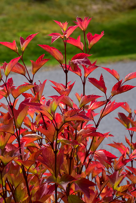 An improved selection of this beautiful native species with rich red leaf tips in spring, very showy pinwheel clusters of flowers in spring followed by abundant brilliant red berries, spectacular fall color; denser habit, faster growing than the species