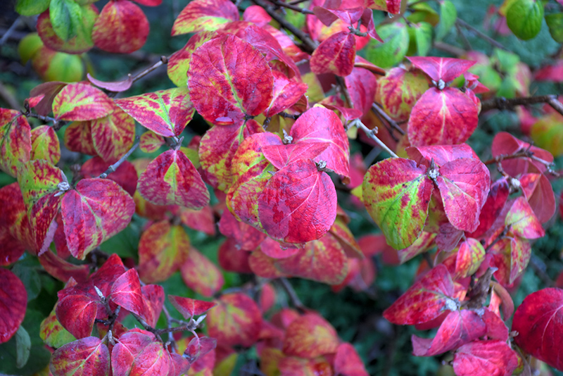 Koreanspice Viburnum is smothered in stunning balls of fragrant white flowers at the ends of the branches in mid spring, which emerge from distinctive cherry red flower buds. It has dark green deciduous foliage. The heart-shaped leaves turn an outstanding red in the fall. The black fruits are held in clusters from late summer to late fall.