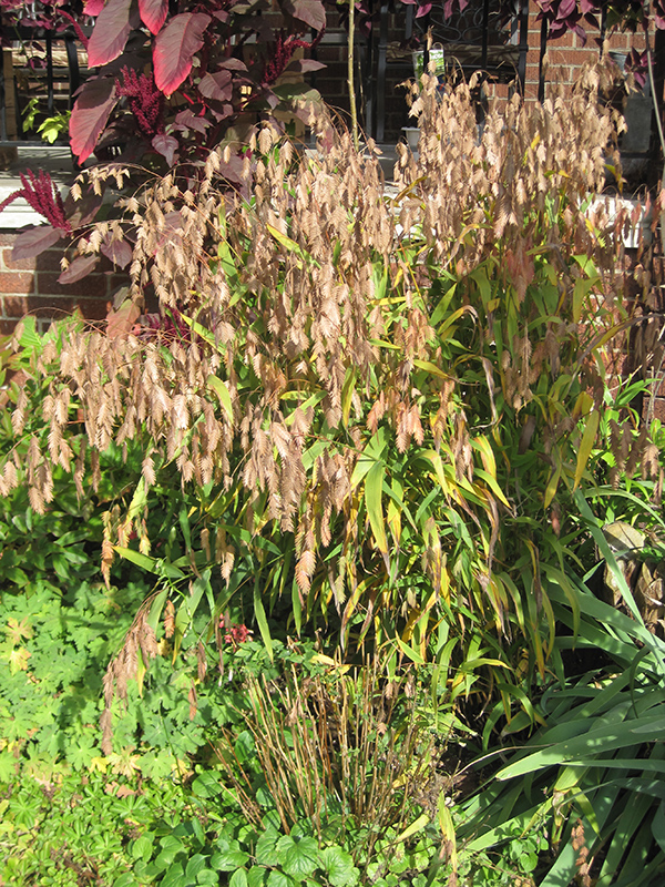 Northern Sea Oats will grow to be about 4 feet tall at maturity, with a spread of 30 inches. Its foliage tends to remain dense right to the ground, not requiring facer plants in front. It grows at a medium rate, and under ideal conditions can be expected to live for approximately 10 years. As an herbaceous perennial, this plant will usually die back to the crown each winter, and will regrow from the base each spring. Be careful not to disturb the crown in late winter when it may not be readily seen!