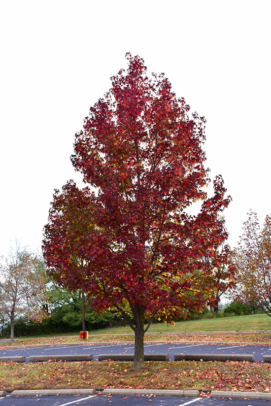 Worplesdon Sweet Gum is primarily valued in the landscape for its distinctively pyramidal habit of growth. It has forest green deciduous foliage. The lobed palmate leaves turn an outstanding red in the fall. However, the fruit can be messy in the landscape and may require occasional clean-up.