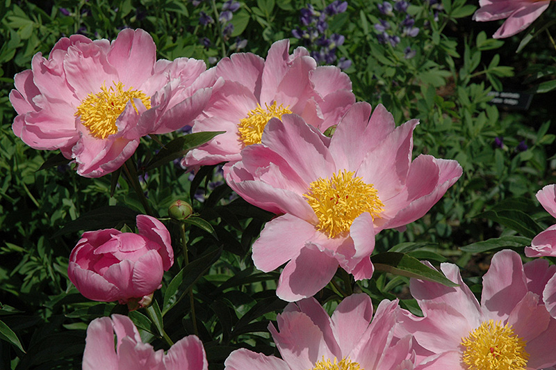 Sea Shell Peony features bold lightly-scented double pink flowers with yellow centers at the ends of the stems from late spring to early summer. The flowers are excellent for cutting. Its compound leaves remain green in color throughout the season.