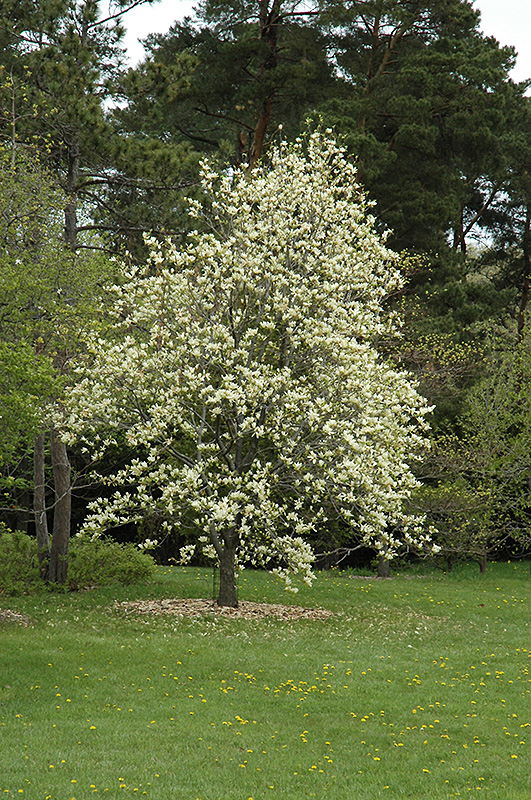 A hybrid magnolia selected for its lemon yellow cup-shaped blooms in spring; neat habit of growth and large, coarse leaves, will grow to become quite a tall tree, leave adequate room; an excellent specimen tree for average sized yards